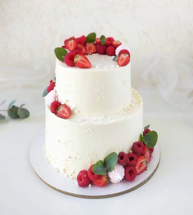Торт, украшенный клубникой, подарит возлюбленным ощущение счастья и восторга.