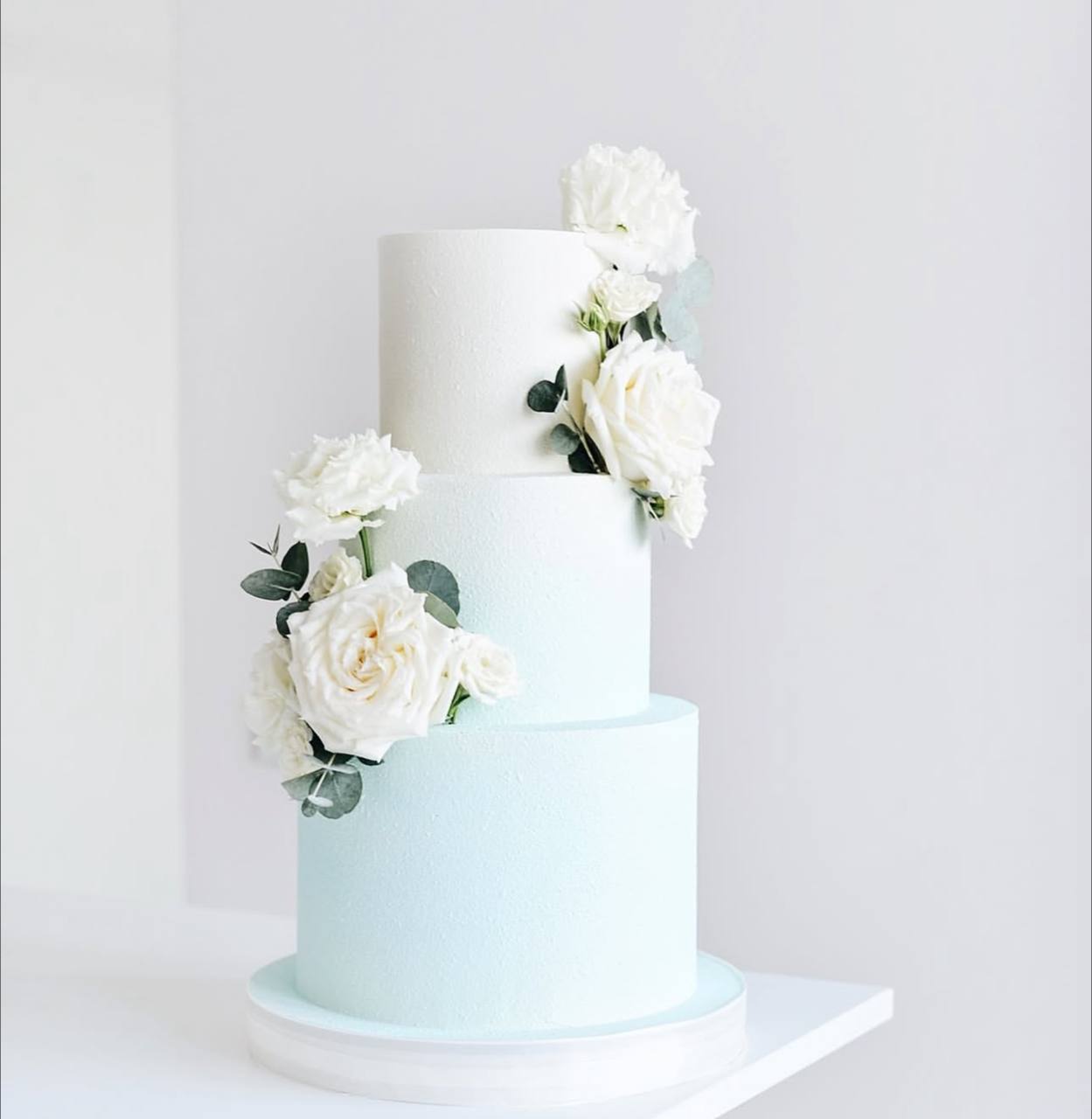 Этот многоярусный торт выполнен в пастельных тонах и украшен нежными цветами. Он символизирует чистоту и гармонию отношений молодожёнов.